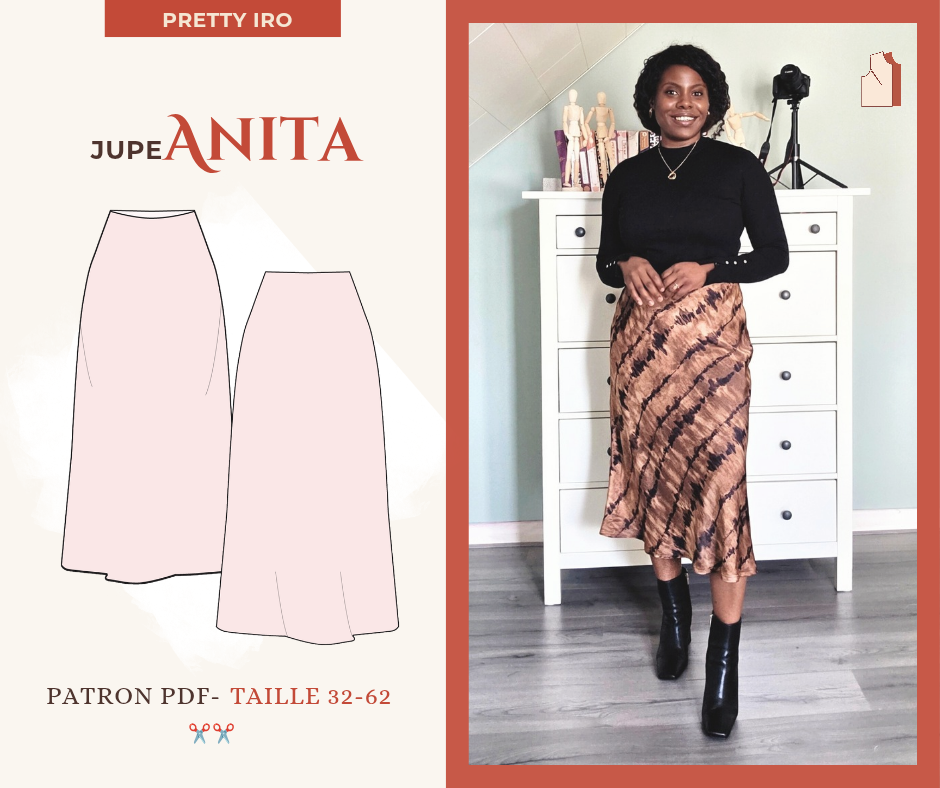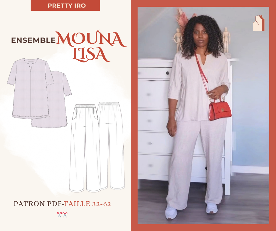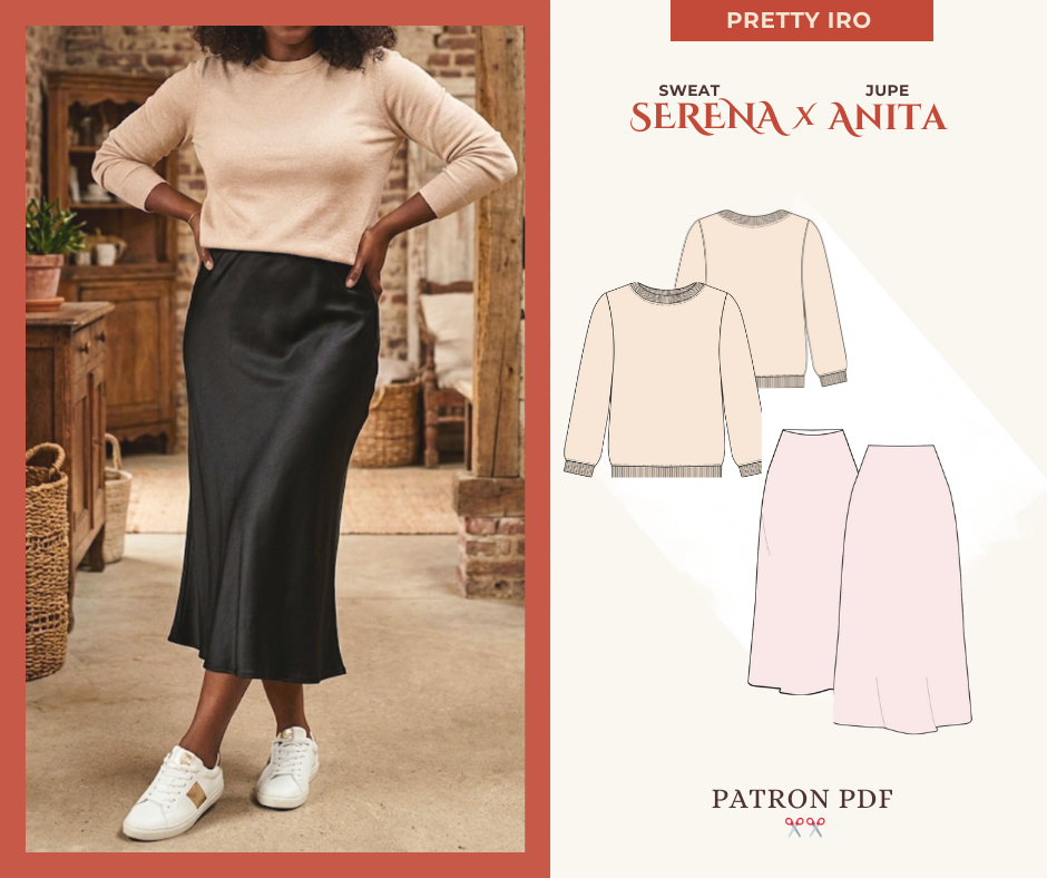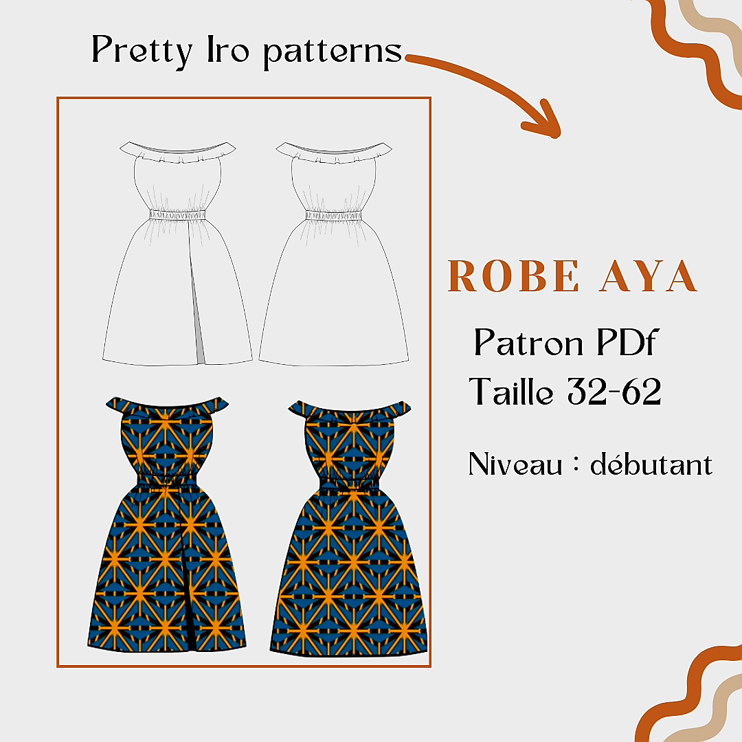 Aya est une robe élegante à encolure bardeau, qui dégage les épaules et met en valeur la silhouette féminine. Elle est proposée en version midi sur le patron, mais peut être cousue en version longue ou mini. et surtout en 2 pièces (la jupe et le haut).