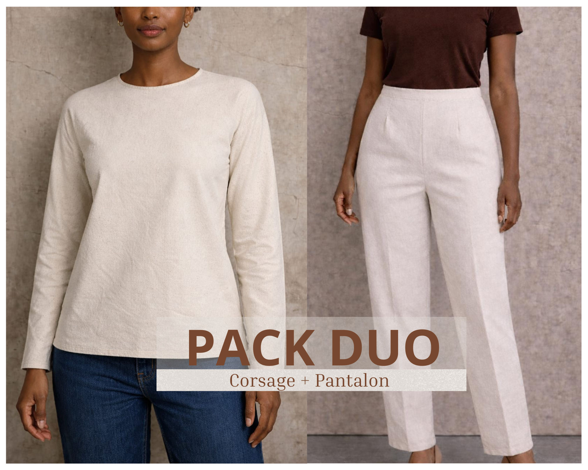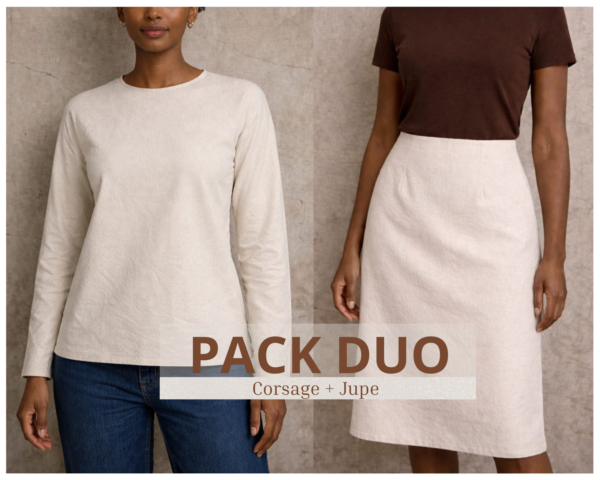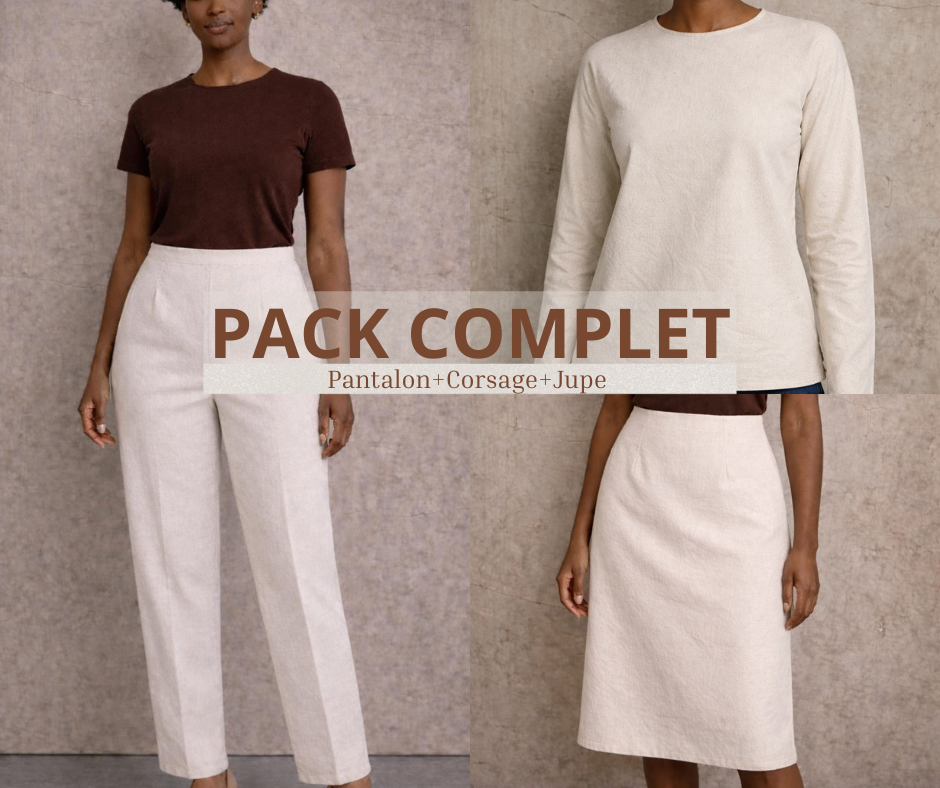Aya est une robe élegante à encolure bardeau, qui dégage les épaules et met en valeur la silhouette féminine. Elle est proposée en version midi sur le patron, mais peut être cousue en version longue ou mini. et surtout en 2 pièces (la jupe et le haut).