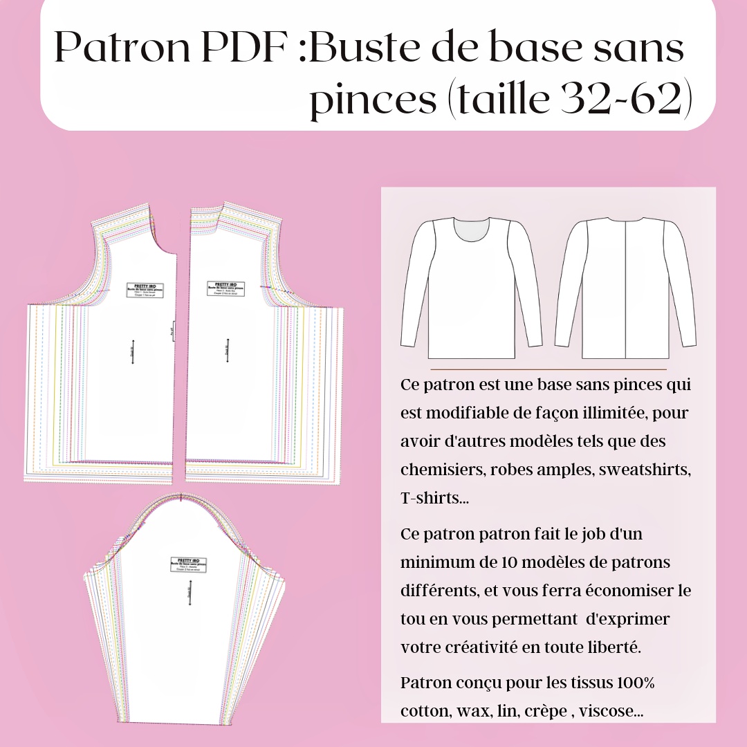Le patron va de la taille 32 à 62; au format A4, A0 et vidéo projecteur.